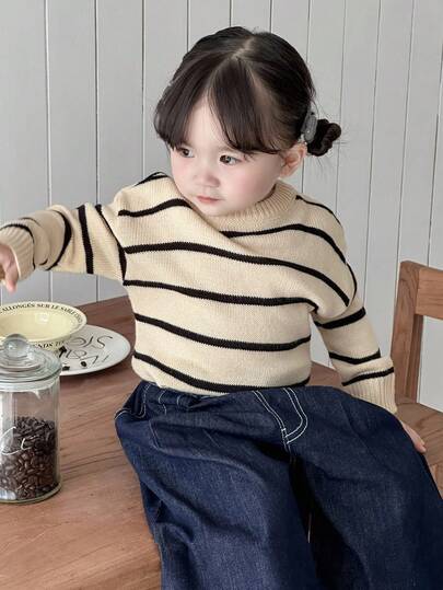 DAZY 女婴休闲条纹落肩毛衣,日常穿着 - 米色 - 查看 1
