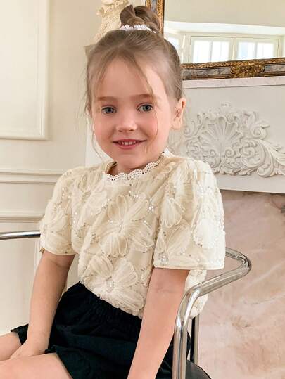 DAZY 女童(小号)圆领短袖衬衫 - 杏色 - 查看 1