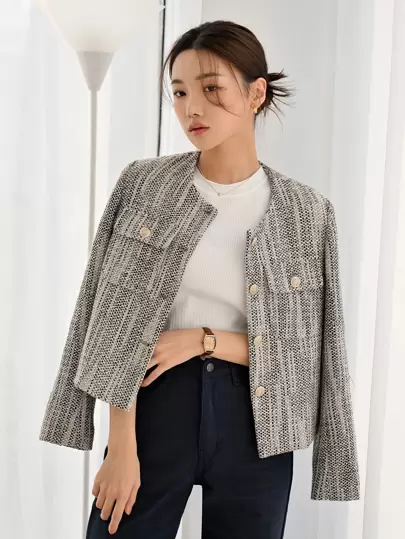 DAZY 冬季段染翻盖口袋单排扣夹克 - 摩卡棕 - 查看 8