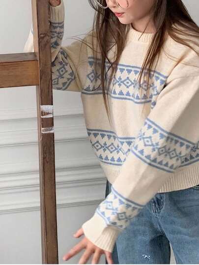 DAZY 青少年女孩日常休闲毛衣,秋季 - 米色 - 查看 1