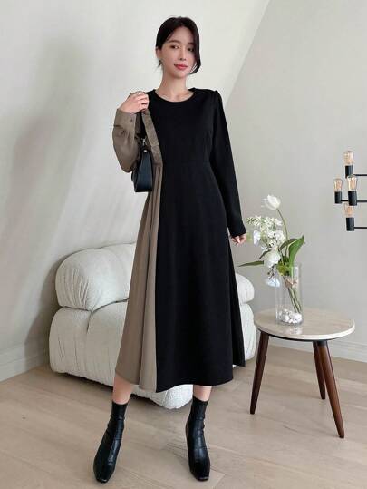 DAZY 雙色圓領洋裝 - 黑色 - 查看 1
