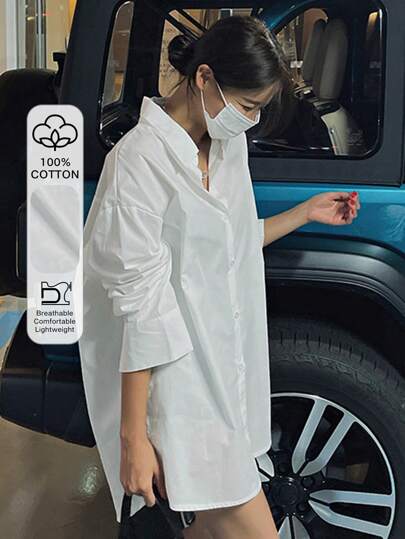 DAZY 女士纯色长袖衬衫,商务休闲风格 - 白色 - 查看 1