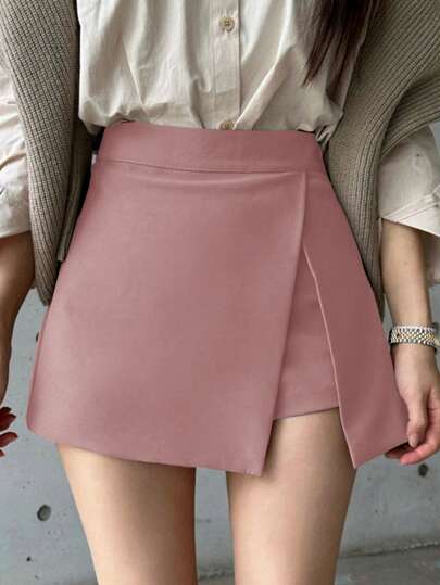DAZY 女士纯色侧开衩短裤,四季皆宜,夏季短裙 - 藕粉色 - 查看 1