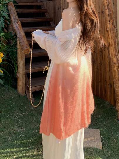 DAZY 女士渐变韩版轻薄长袖针织上衣 - 粉色 - 查看 1
