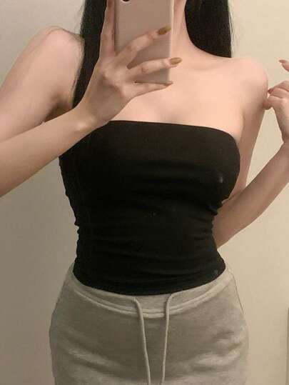 DAZY 女士罗纹面料短款吊带背心,夏季休闲无袖背心 - 黑色 - 查看 8