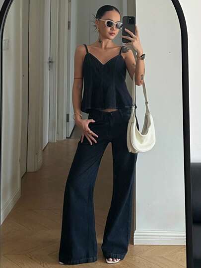 DAZY 女士夏季休闲水洗牛仔吊带背心 - 藍色 - 查看 1