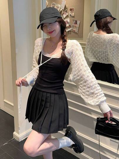 DAZY 女士纹理长袖开衫,百搭韩式针织上衣 - 白色 - 查看 6