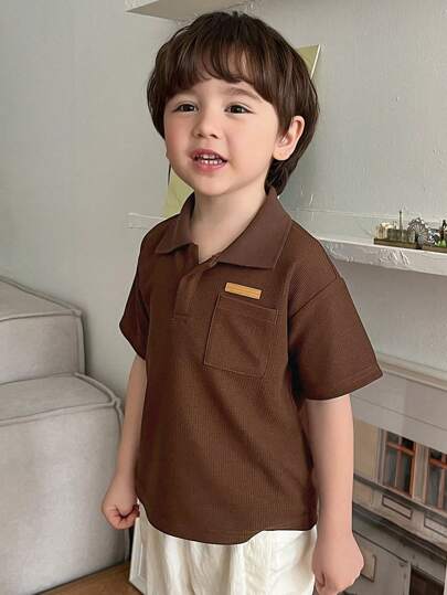 DAZY 男童印花口袋Polo领短袖休闲T恤 - 棕色 - 查看 1
