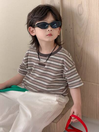 DAZY 男童条纹圆领休闲百搭日常短袖T恤 - 灰色 - 查看 1