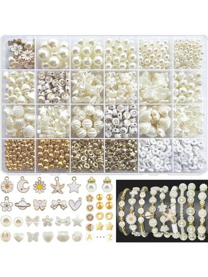 DIY 白色仿珍珠字母和雏菊吊坠配件、珠宝制作套件 - 彩色 - 查看 1