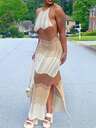 纯色露背吊带连衣裙,配网布嵌件和系带设计