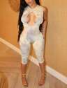 蕾丝边蝴蝶结装饰修身连身裤,街头风格