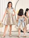 SHEIN 少女两件套:金色/米色奢华纯色梭织拼接无袖 A 字裙 + 中袖夹克,波西米亚风,优雅复古风格