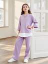 SHEIN 两件套:年轻女孩梭织纯色短款休闲上衣和梭织 A 字裙