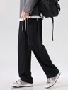男士夏季輕盈休閒褲,松身寬腿長褲,搭配繩套和筆直裁剪,適合戶外休閒穿著
