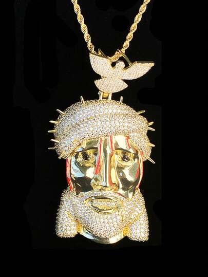 DUBSS 1 件镶钻耶稣鸽子吊坠项链,男士款,镀 5A 立方氧化锆,嘻哈风格饰品 - 人像 - 查看 1