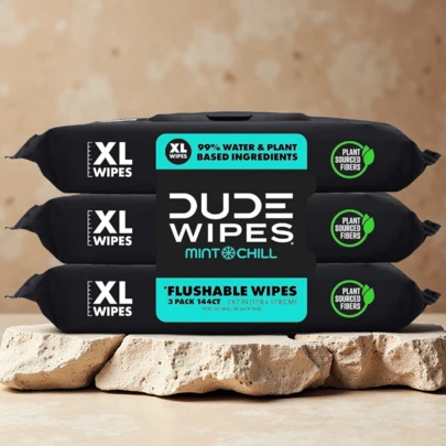DUDE Wipes Mint Chill Flushable Wipes, 48 Count Extra-Large Adult Wet Wipes, Infused With Tea Tree Oil Vitamin E & Aloe, Plant-Based Plastic Free Fibers, Septic & Sewer, Travel Pack, Mint Chill Cooling Effect, Bathroom Essentials & Personal Care