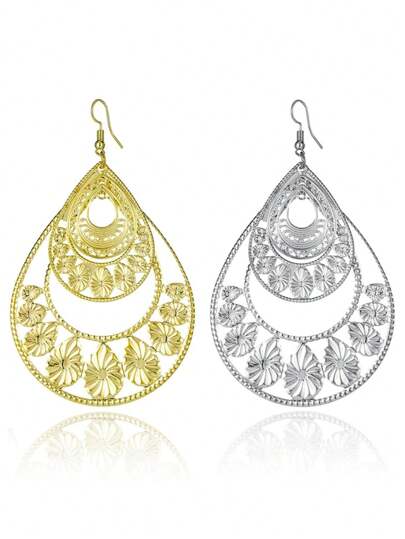 帶移動心形設計的垂墜耳環,女性優雅時尚長款耳環,誇張的金屬吊墜,迷人的珠寶禮物 - 鏤空水滴 - 查看 28