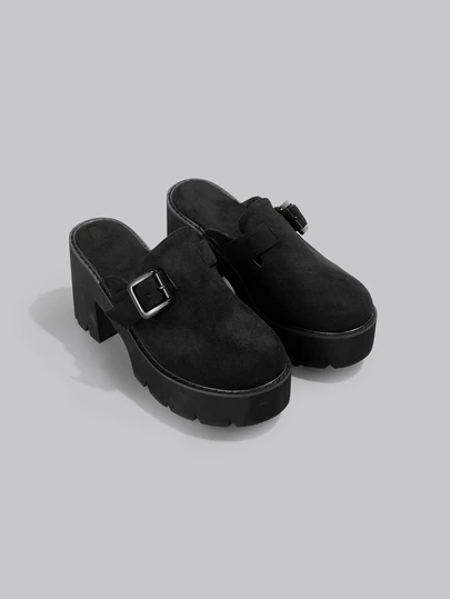 DareSee 复古厚底一脚蹬时尚女式乐福鞋、包头休闲露背坡跟鞋、百搭高跟穆勒鞋 - 黑色 - 查看 1