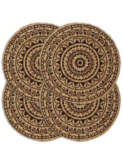 Dark Brown Round Placemats Set Of 4 For Dining Table 38cm -Friendly Handwoven Table Decor - 棕色 - 查看 1
