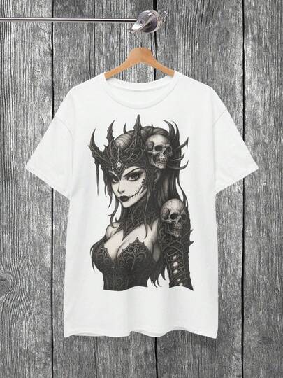 Dark Queen Skull Graphic T-Shirt Gothic Tattoo Art Edgy Streetwear