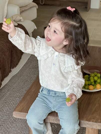 Dazy Kids 女婴蕾丝蝴蝶结休闲长袖上衣,幼儿秋装 - 白色 - 查看 1