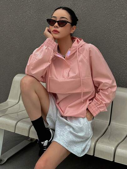 Dazy Star 素色半拉鏈抽繩連帽夾克