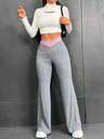 實心插領襯衫領西裝外套和寬腳褲,優雅套裝