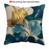 TOPSSCTR 1 件 2D 平面印花复古银杏叶无刺绣枕套,45x45 厘米,涤纶,拉链开合,可机洗,编织装饰靠垫套,适用于客厅、卧室、办公室 - 绿松石蓝和金色设计,单面设计,无填充