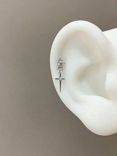 精致十字架吊坠耳环,时尚奢华学生风耳夹,女士春夏款