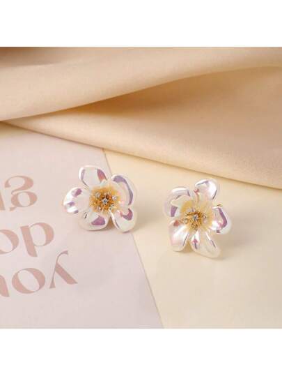 精致高端彩虹色贝壳和花朵耳钉,女士礼物 - 花朵2 - 查看 1