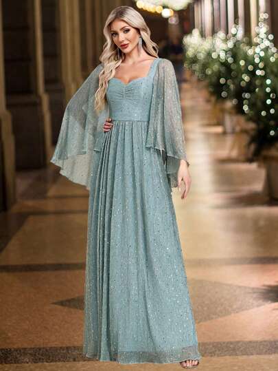 水钻领褶饰亮片派对连衣裙 - 藍色 - 查看 1