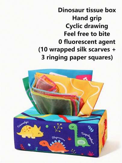 恐龍造型餐巾盒(附10片布餐巾和3片皺紋紙巾),智力和耐撕的衛生紙盒,適用於手指鍛煉和娛樂 - 彩色 - 查看 1