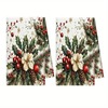 1/2 件节日冬青和槲寄生厨房毛巾套装,15.7x23.6 英寸 - 柔软涤纶手巾,带有红色、绿色和金色节日图案,非常适合擦干碗碟和茶杯,复古农舍风格,非常适合厨房和餐厅装饰,圣诞毛巾