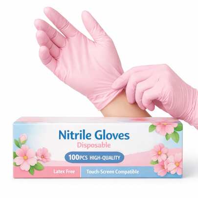 一次性粉色丁腈手套,无粉无乳胶手套,适用于美容院厨房清洁
