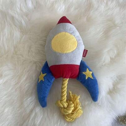 狗狗磨牙玩具,绳结造型,创意火箭飞机设计,会发出吱吱声,可抛掷和捡拾,宠物解闷好物 - 彩色 - 查看 10