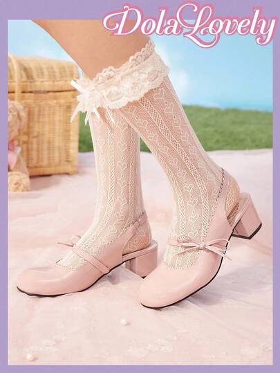 Dola Lovely 粉色甜美丝带和蝴蝶结装饰玛丽珍洛丽塔女鞋 - 粉色 - 查看 10