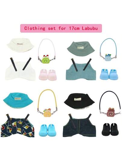 娃娃服装套装:牛仔背带裤、渔夫帽、包包饰物、拉布布的鞋子(不含娃娃) - 彩色 - 查看 32
