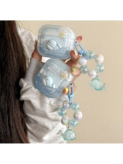 海豚/鲸鱼、花朵兔猫/花朵可旋转抗压保护套,兼容苹果蓝牙耳机,防刮防摔保护套,兼容苹果蓝牙耳机盒 - 無色 - 查看 1