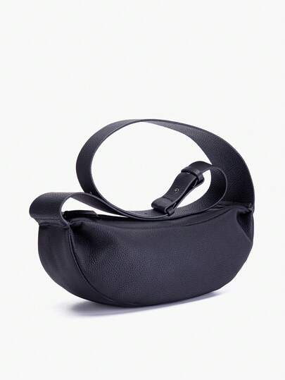 Donnain 黑色真皮單肩包女士時尚新月形胸包流浪包