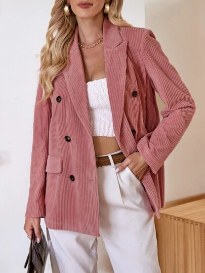 雙排釦燈芯絨西裝外套 - 藕粉色 - 查看 1