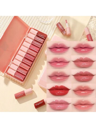 Dragon Ranee 10入組/套亮澤唇蜜、唇染、唇釉、保濕、持久、有鏡面口紅唇釉唇蜜套裝 - 彩色 - 查看 1