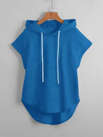 StreetHx 束口連帽蝙蝠袖t恤,帶弧形下擺設計 - 藍色 - 查看 1