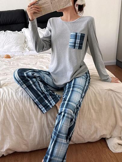 Dream Adore 休闲格子印花女士长袖睡衣套装 - 彩色 - 查看 1