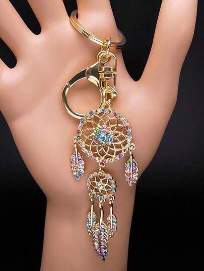 捕梦网闪亮水晶钥匙扣,女士水钻闪亮钥匙扣,捕梦网钥匙扣吊饰适用于汽车包汽车配件包饰学院可爱哥特 Y2k 包饰挂绳带身份证夹汽车配件包饰 - 金色 - 查看 9