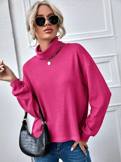 SHEIN LUNE 落肩袖條紋針織T恤 - 玫紅色 - 查看 1