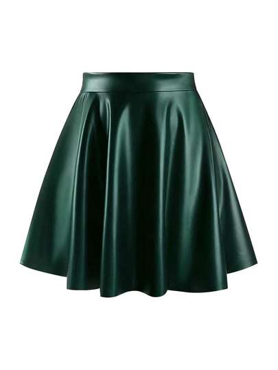 EARO 女式金属褶迷你裙 - 墨綠色 - 查看 1