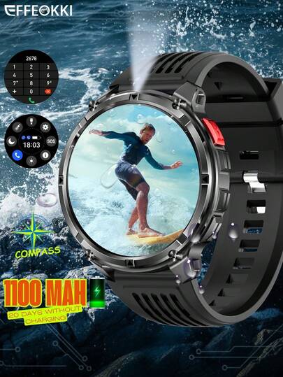 EFFEOKKI 1100mAh 坚固耐用户外智能手表,男士款,超长续航,指南针导航,多种运动模式,IP68 防水健身追踪器,兼容 iOS 和安卓手机 - 1100mAh/1.7" Round Screen/Black Strap - 查看 7