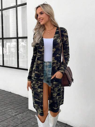 EMERY ROSE 秋冬迷彩印花双口袋落肩大衣 - 彩色 - 查看 1