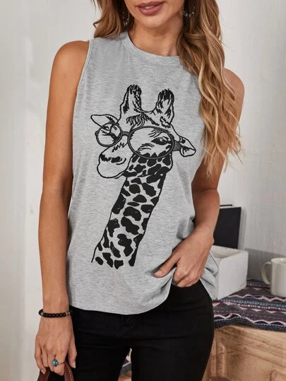 EMERY ROSE 卡通圖案背心上衣 - 淺灰色 - 查看 1